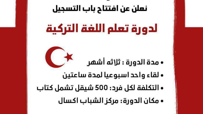 تحت رعاية مجلس اكسال المحلي والمركز الجماهيري اكسال ومركز الشباب إكسال نعلن عن افتتاح باب التسجيل لدورة